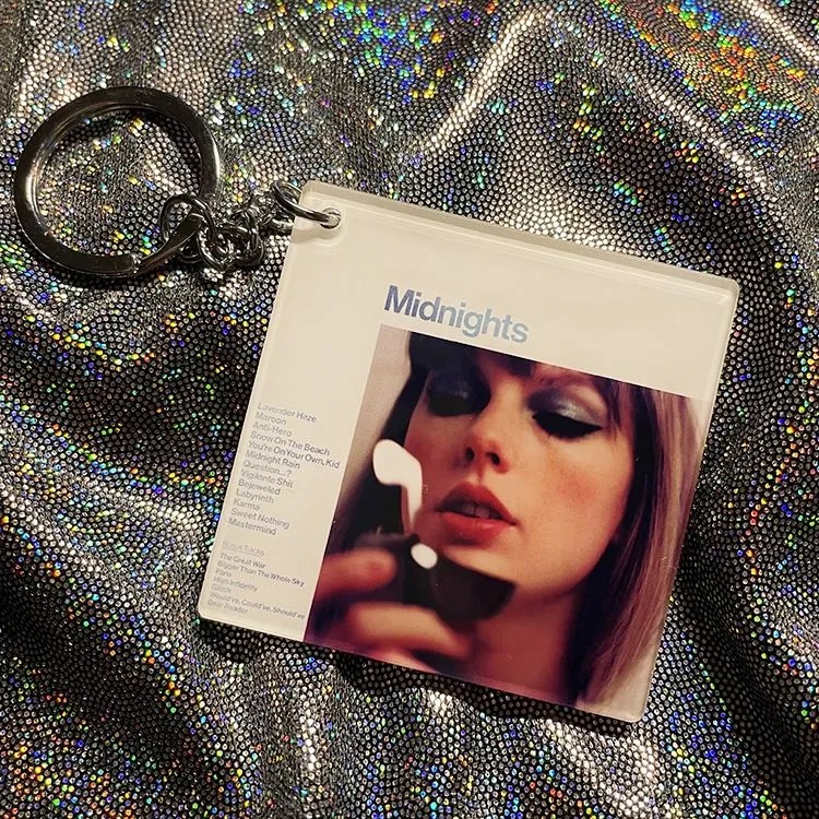 Meet me at midnight with this essential accessory! This double-sided acrylic keychain perfectly replicates the iconic Midnights album art, featuring the intentional vintage filter.