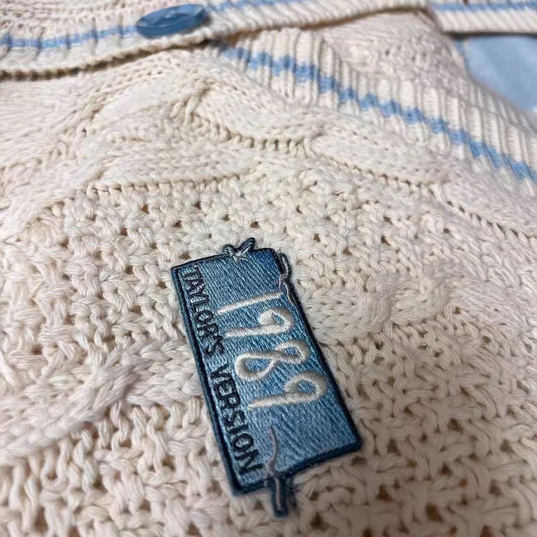 Nice to meet you, where you been? Available in Sky Blue or Clean Cream, this soft knit cardigan features the iconic “1989 Taylor’s Version” patch and embroidered stars down the sleeves.