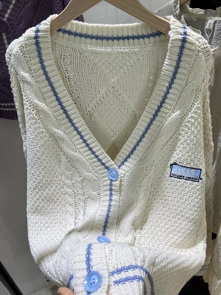 1989 (Taylor’s Version) Inspired Cardigan | Seagull Blue & Cream Knit Sweater