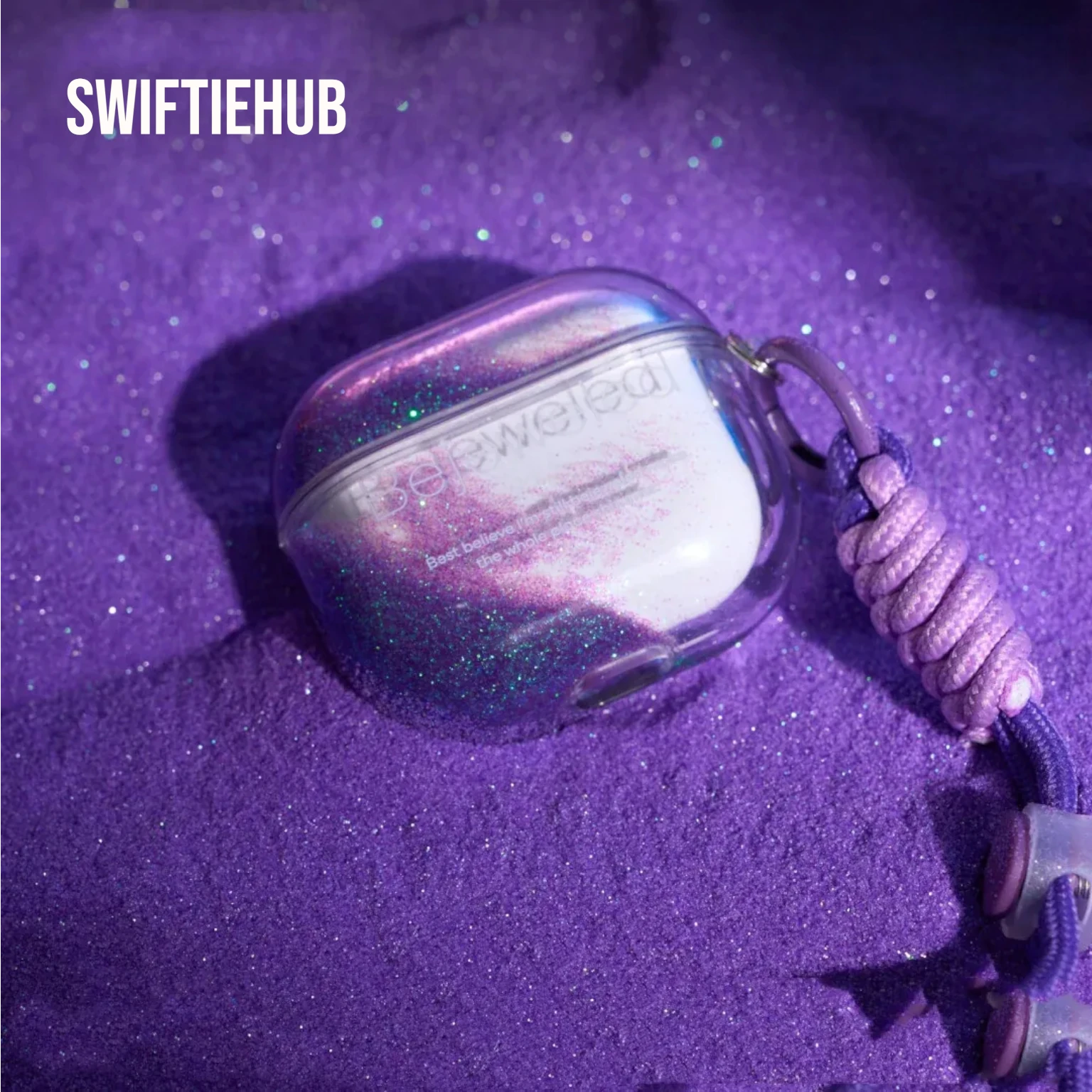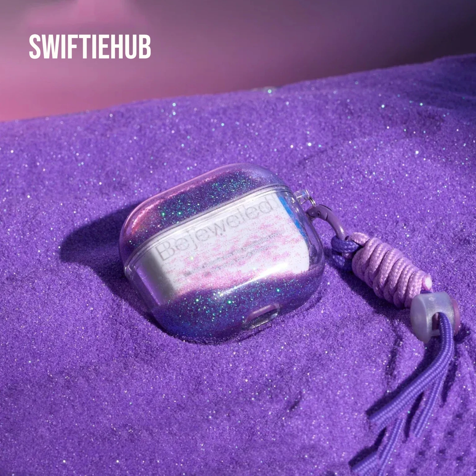 Bejeweled Purple Liquid Glitter Earphone Case | Flowing Sparkle Quicksand Case for AirPods | Matching Phone Case Available