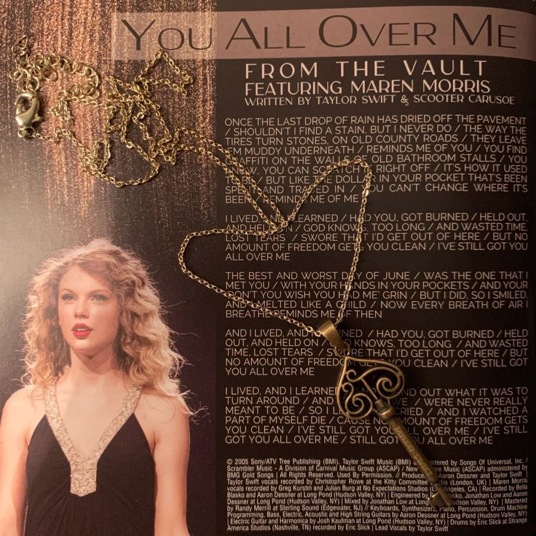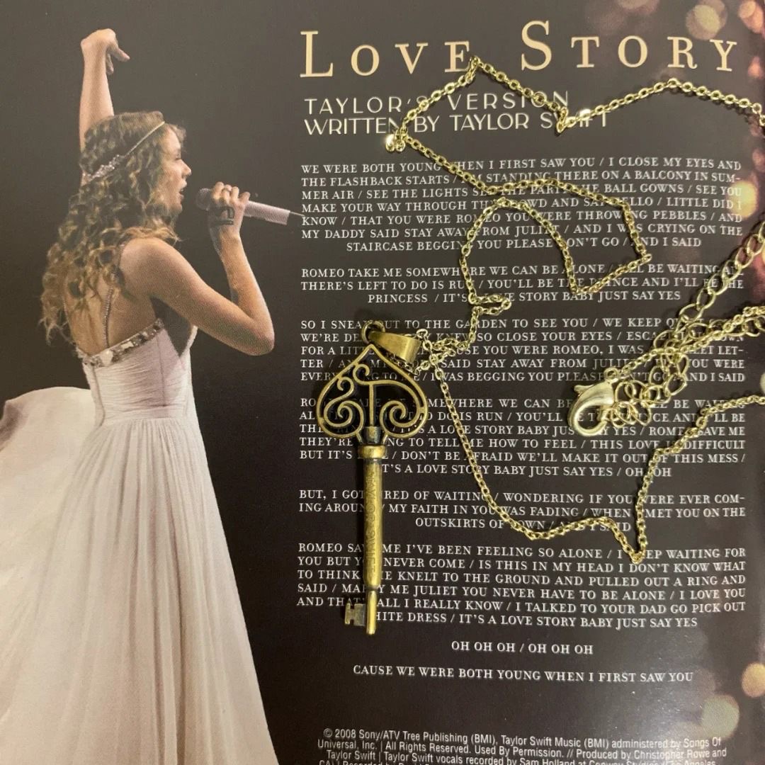 🎵 Channel your inner Taylor Swift with this Fearless inspired key necklace, a must-have for every Swiftie! Designed with a vintage key shape featuring intricate swirls and the iconic “Taylor Swift” engraving, this necklace captures the essence of her timeless style. Inspired by the Fearless era, it’s an elegant tribute to her music journey.