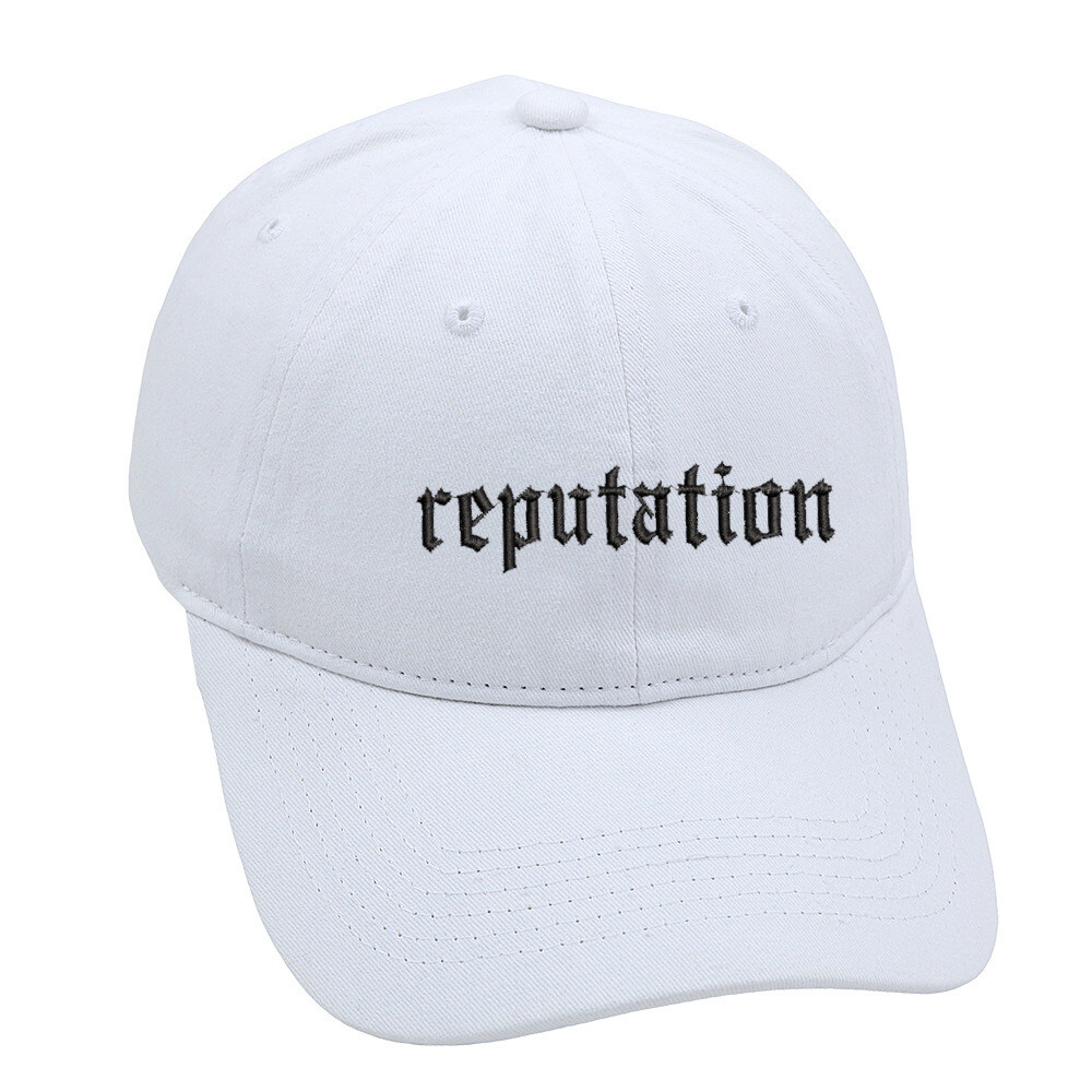 Unleash your inner snake with the ultimate accessory for the reputation era! This embroidered baseball cap is the perfect subtle statement piece, featuring the iconic gothic “reputation” script stitched boldly across the front.