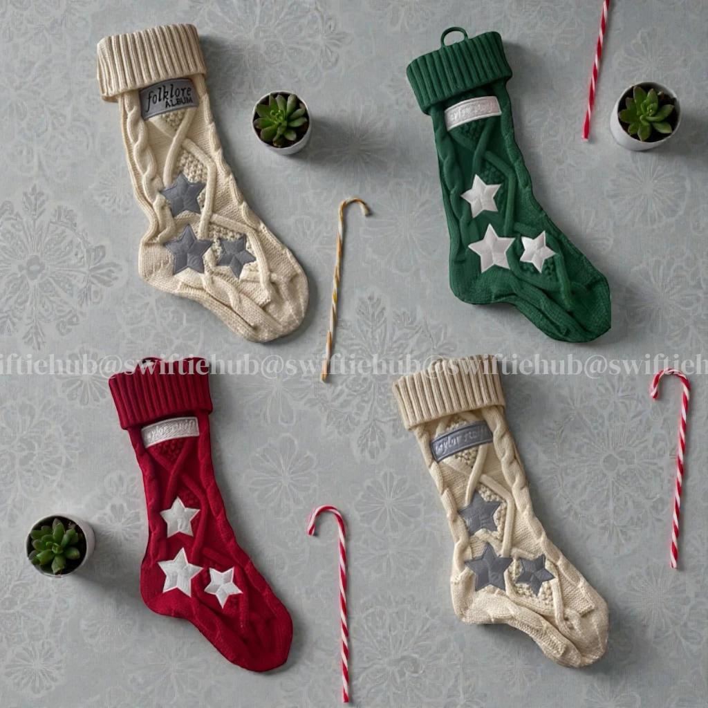 It’s the most wonderful time of the year! Bring a touch of festive magic and legendary style to your fireplace this season. These officially inspired Taylor Swift Christmas stockings are crafted from a soft, high-quality knit material, available in three classic holiday shades: a deep Dark Green, a cozy Cream cable knit, and a vibrant Burgundy.