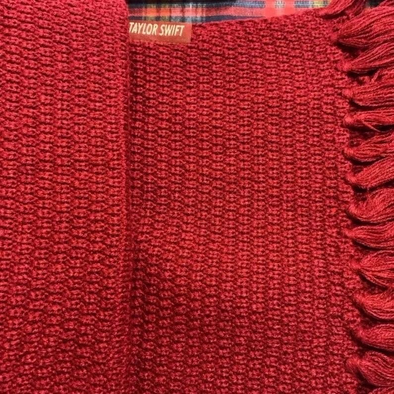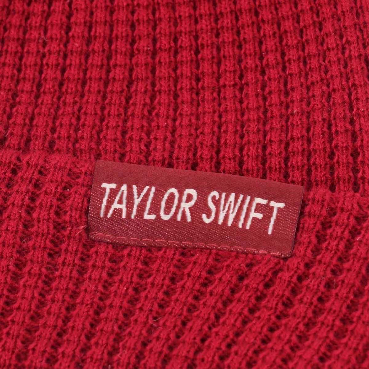 “And I left my scarf there at your sister’s house…” Capture the Red era aesthetic with this high-quality replica. Features the signature burgundy cable knit and “Taylor Swift” label.